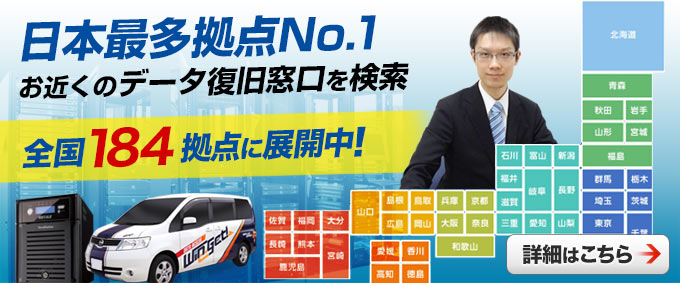 今回は、TeraStationが持ち出せないとのことで、滋賀県までの出張対応となりました。やはり、データが重要だと、TeraStationなどの機器が持ち出せない場合が多々あります。そのため、データ復旧が必要となった際、お客様より対応はどうすればいいのかという相談を頂きます。ウィンゲットでは、そんなお客様の為に、出張データ復旧対応ができるので、滋賀県以外に全国に復旧拠点がございますので、全国どこでも対応致します。お気軽にまずはご相談ください。